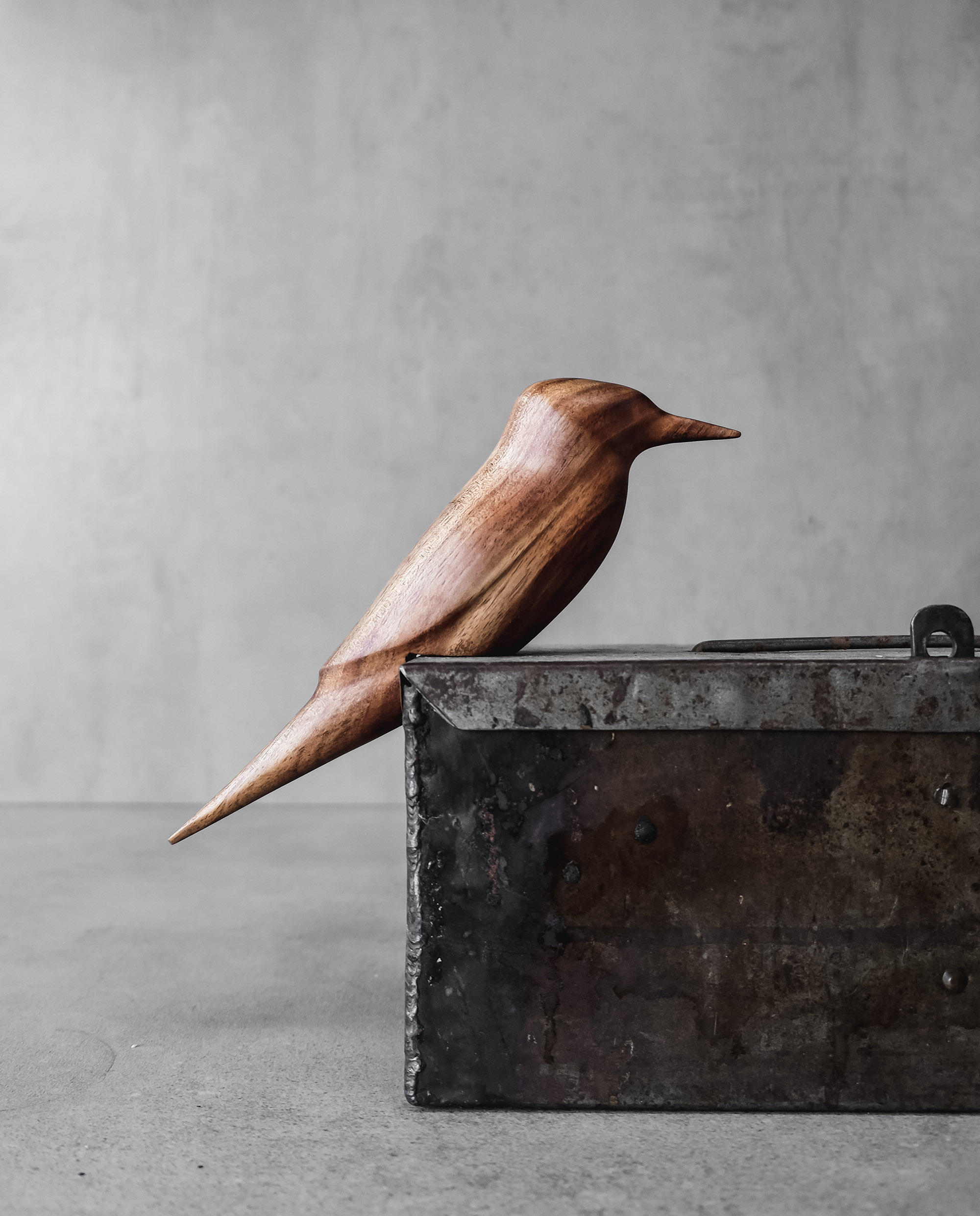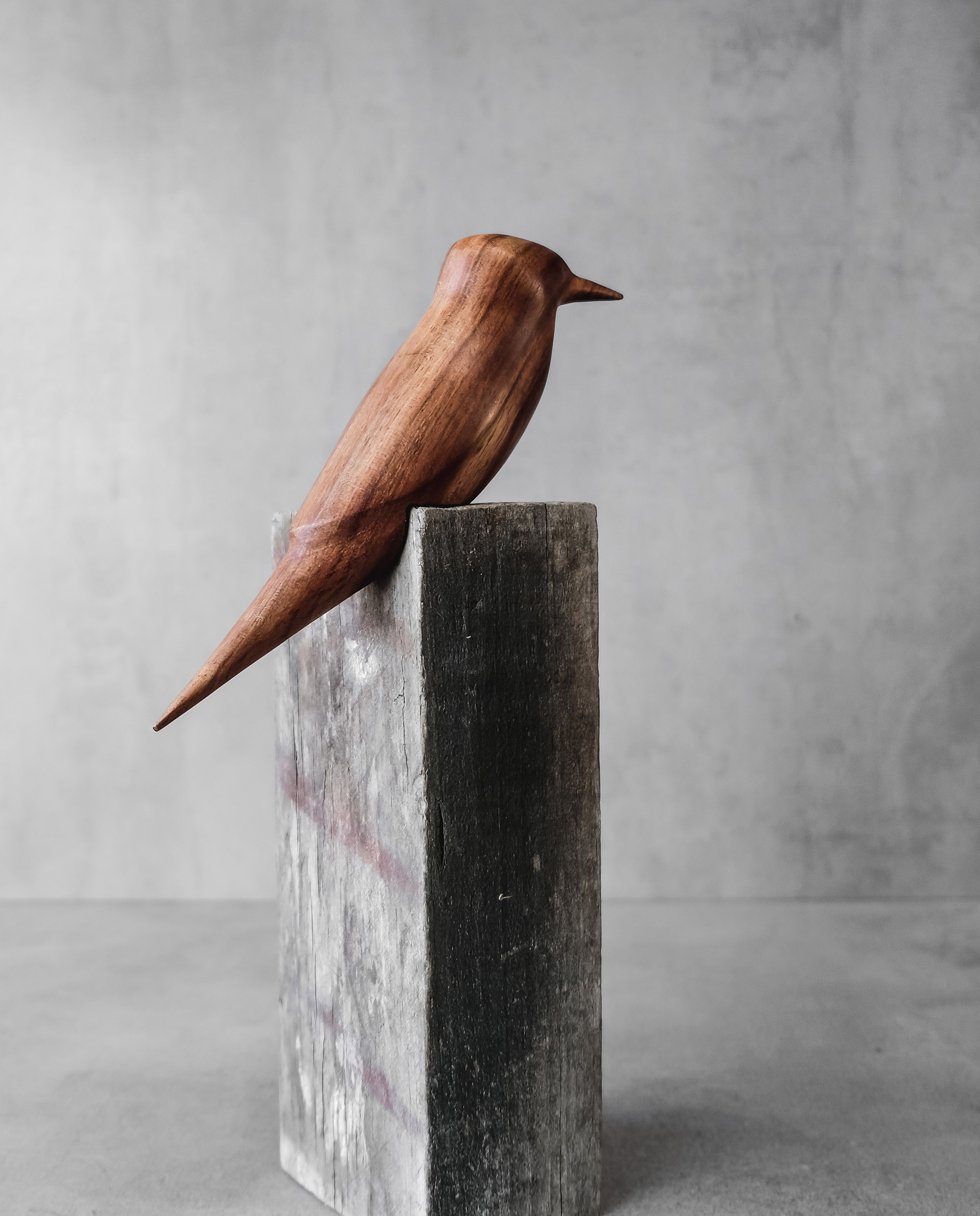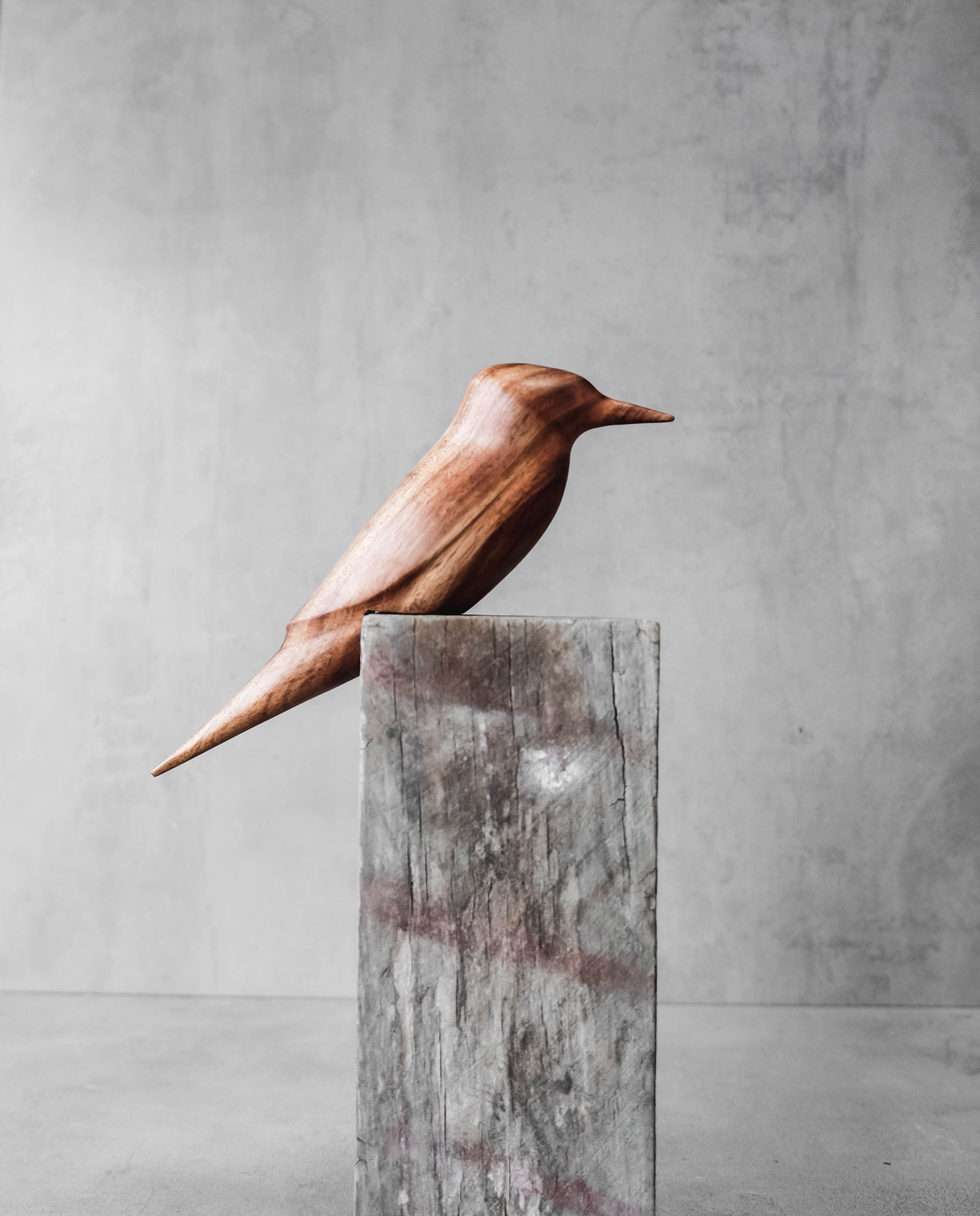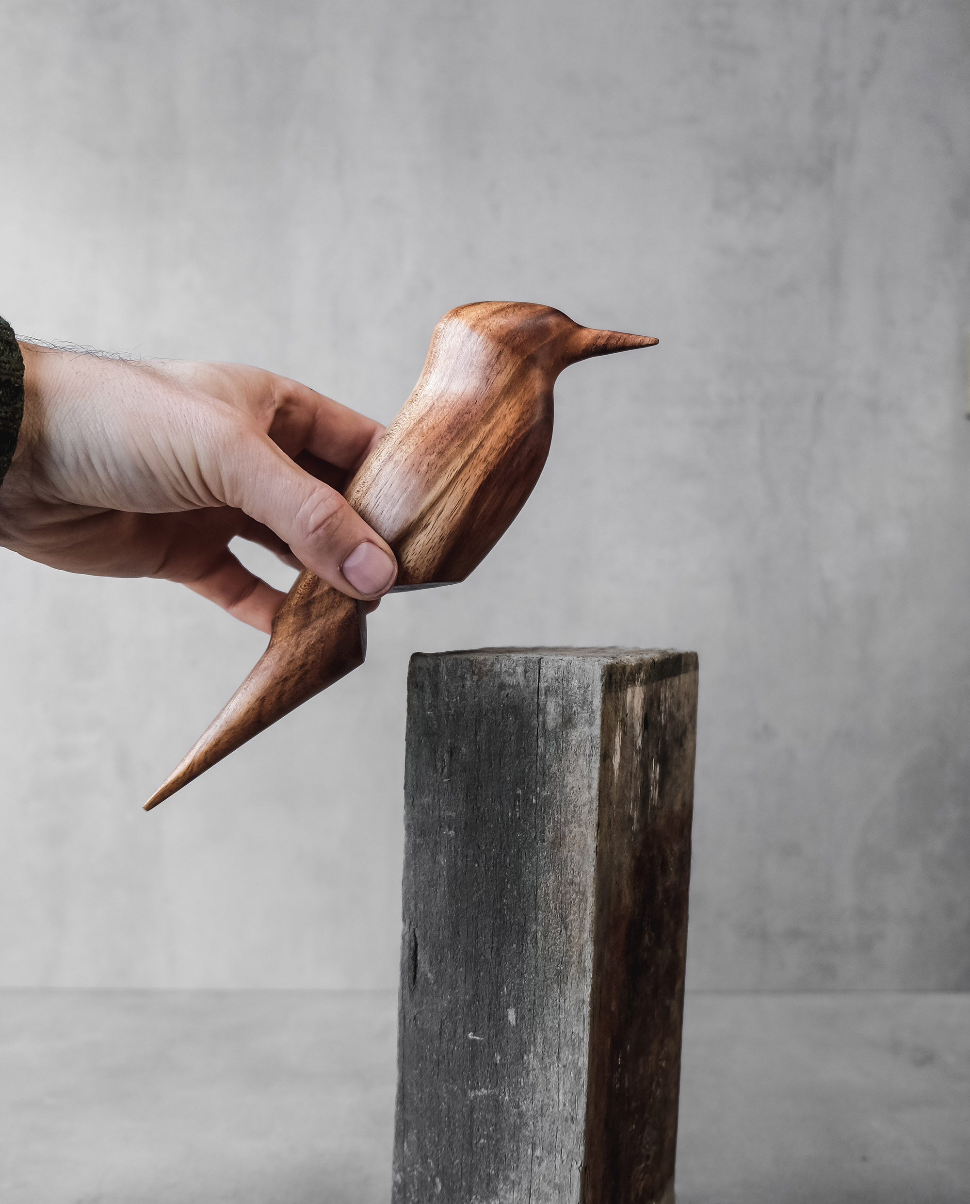 Each wooden bird is lovingly carved from a custom selected bit timber to provide its own unique grain pattern and character. The upmost effort has been put in to sustainably source all of the materials used to ensure the most gentle of fo. As each one is custom carved they are all slightly different in shape.