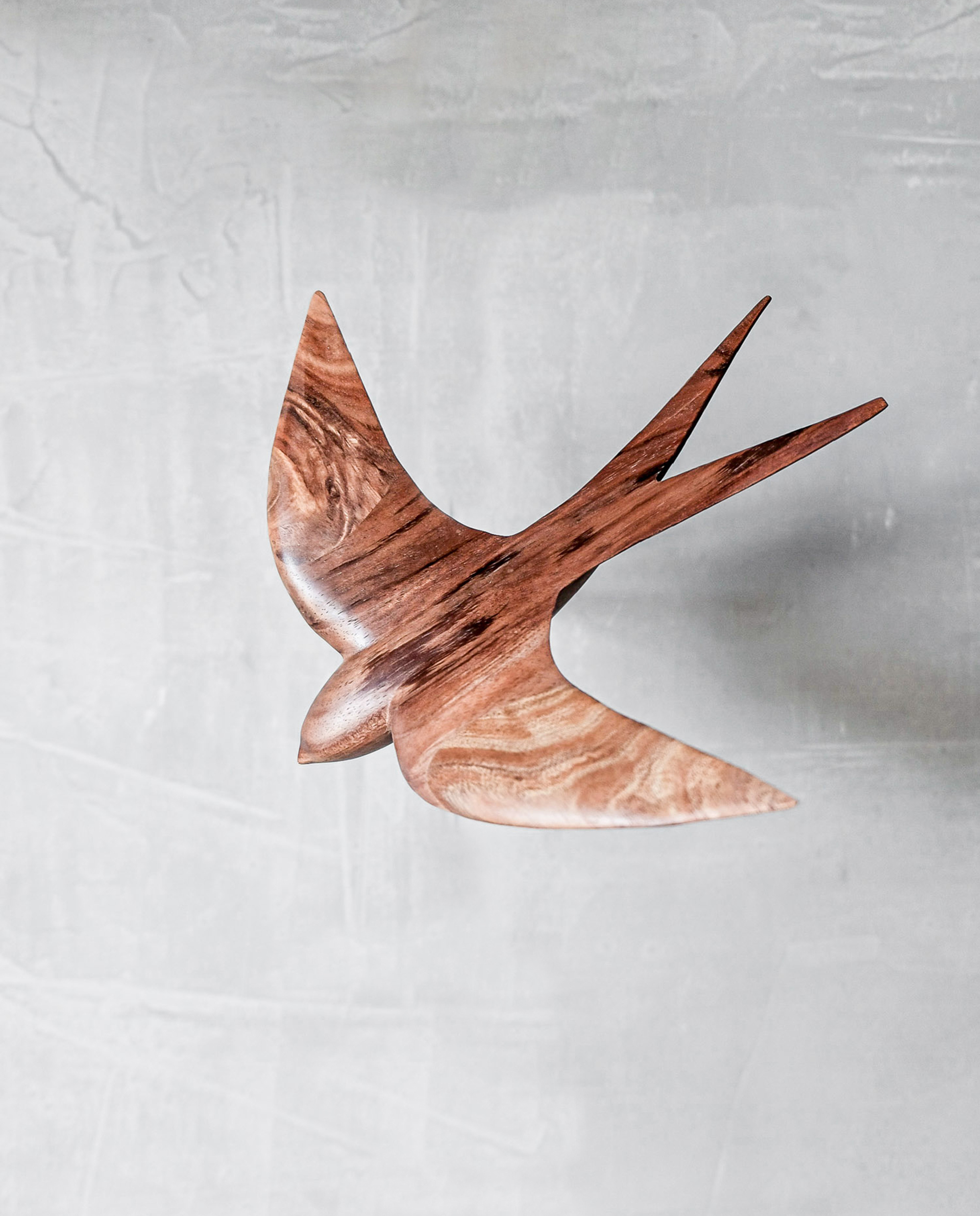 This wall-mounted swallow sculpture captures the free-flowing movement of a bird in flight. Carved from Tasmanian blackwood, it follows the same minimalist, mid-century modern design language found across Bearwood Workshop’s collection.