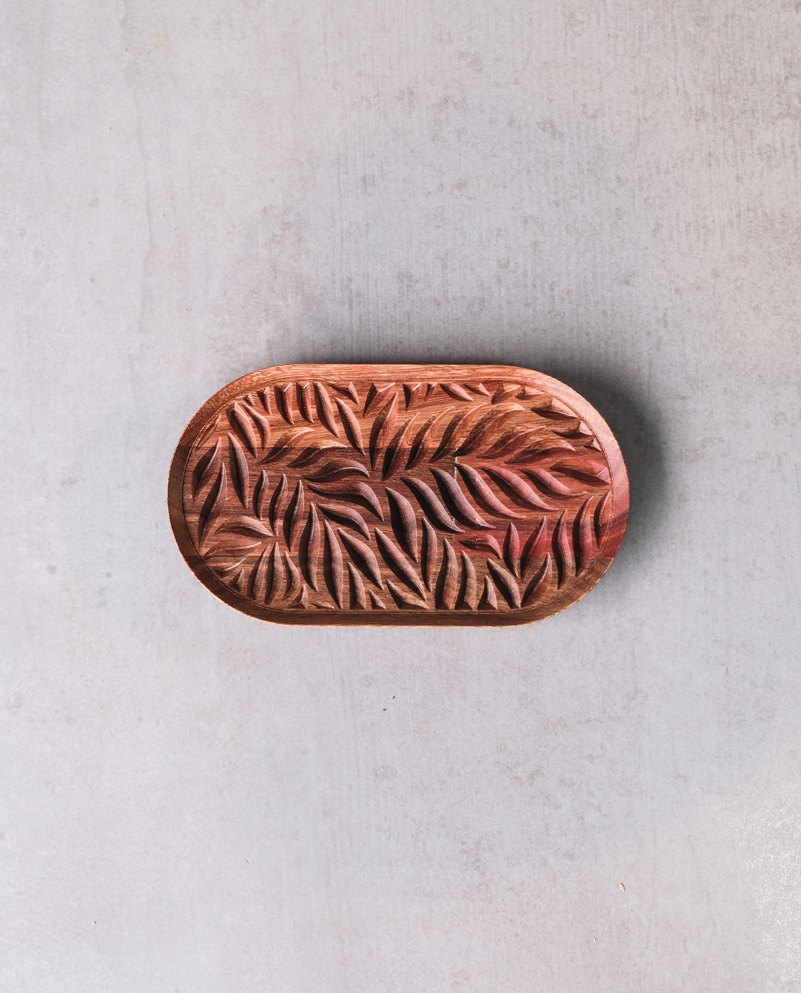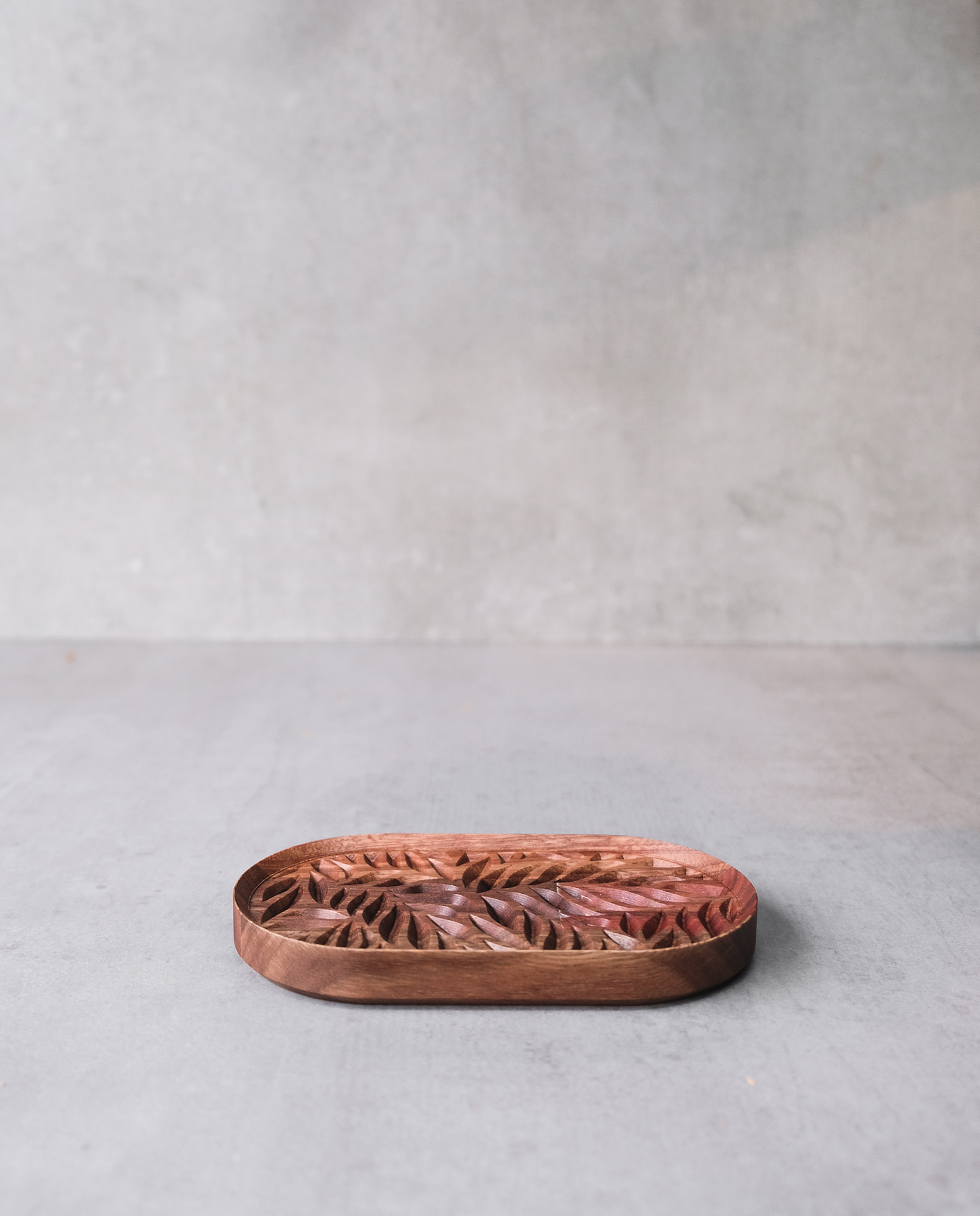 Hand Carved wooden soap dish the intricate NZ inspired fern leaf pattern.