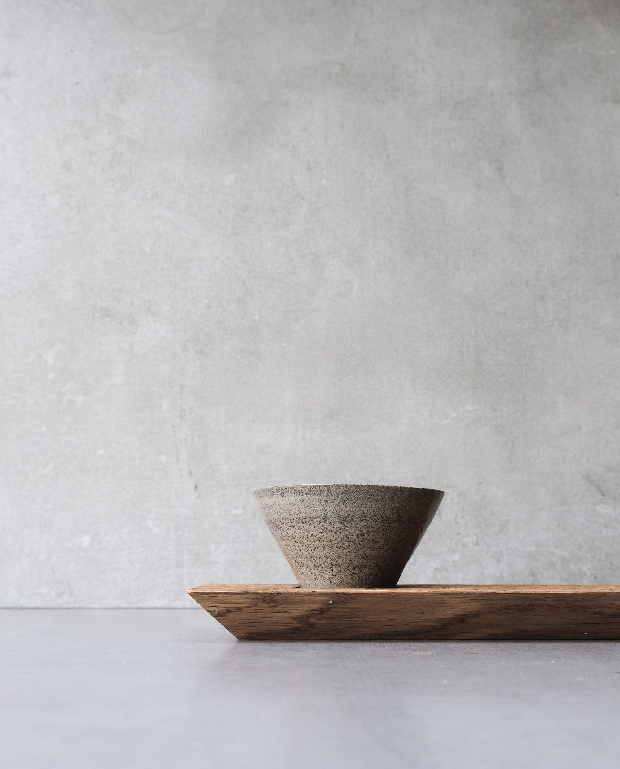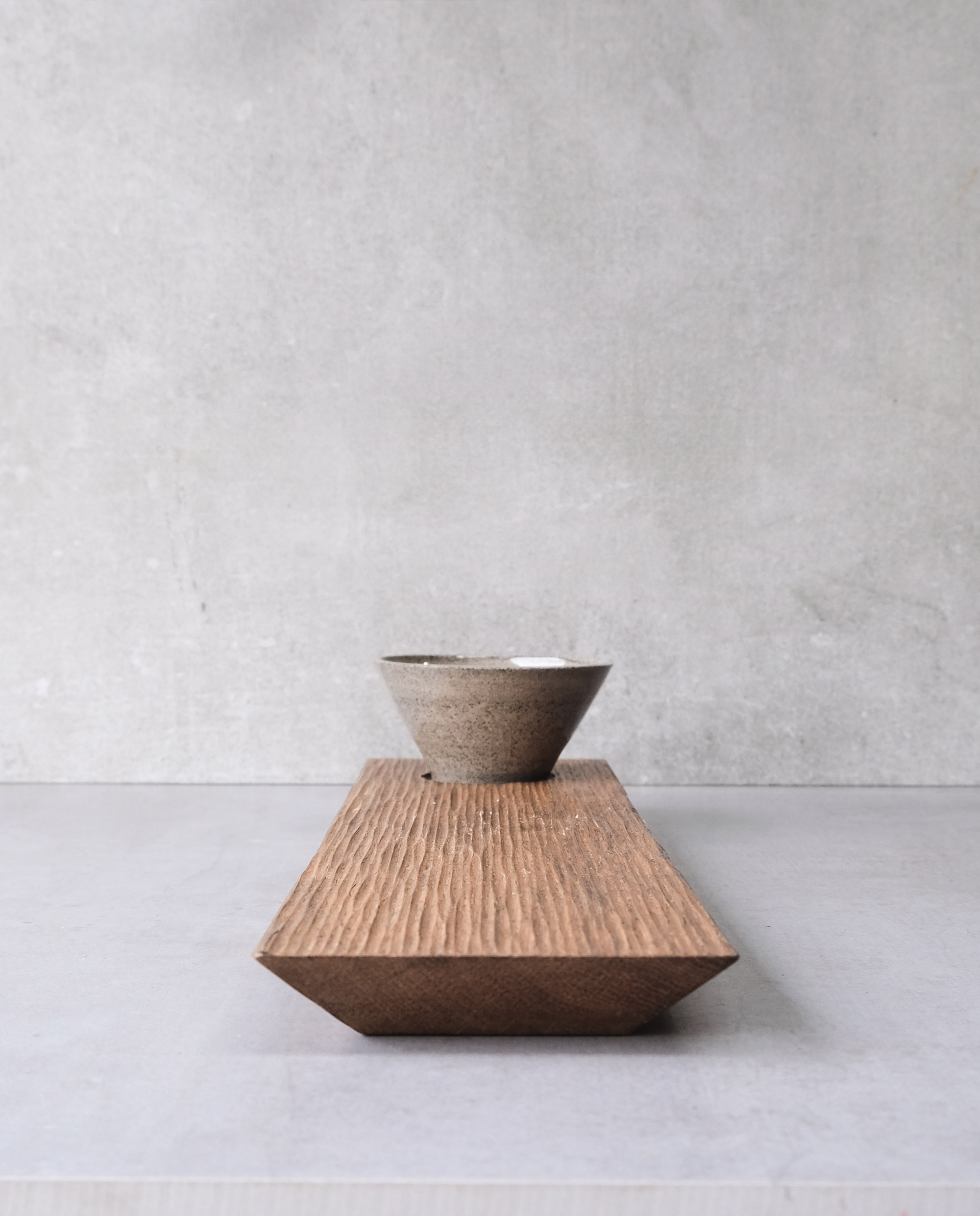 Hand made serving tray with a subtle carved texture pattern and bespoke ceramic dish. It can be used to serve your favorite array of cheeses, olives, and oil through to your classic tea and biscuits.